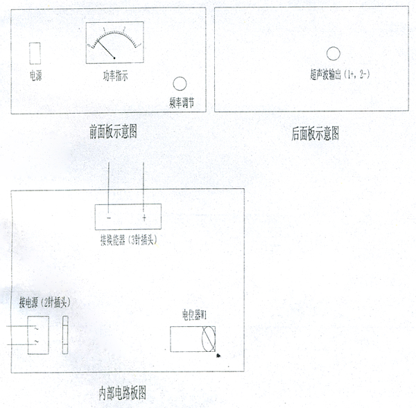 用戶將換能器安裝好后,按圖中的正負級接線(1+,2-),即可打開電源并工作。工作中調節(jié)W1電位器(裝在面板上),使聲波輸出功率達到效果*佳狀態(tài),但電流不得超過500mA(0.5A),如果長時間工作電流過大,換能器發(fā)熱,會燒壞換能器元件導致生產受損。若電流指示燈亮,而無電流顯示,則檢查電路板上的保險是否燒斷,更換時必須按原來的規(guī)格更換(0.5A)。